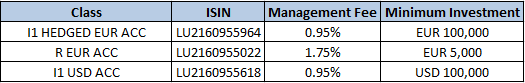 The fund’s medium to long-term capital growth target stands at 3% of outperformance per annum with medium volatility. According to Bloomberg, the annual management fee will be 1.75% for the retail class and 0.95% for the institutional classes, as well as a performance fee of 10%. The fund have six classes and will be available to purchase in Euros (EUR) or US Dollars (USD).